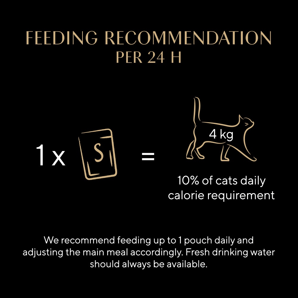 Complementary pet food for adult cats in gravy made with natural* and high quality ingredients.The texture combination of the silky broth and delicate chunks has been masterfully crafted to delight your cat's senses with complementary wet cat food.Made with 100% natural chicken & fish & MSC certified responsibly sourced fishCat soup pouches made with Chicken and no added preservativesAdded source of hydrationCalories 19kcal in 40gINGREDIENTS