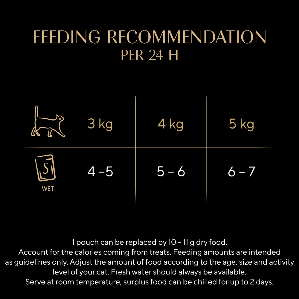 Keep your feline friend interested time after time with delicately sliced pieces, served in a silky gravy. Served in handy cat food pouches.